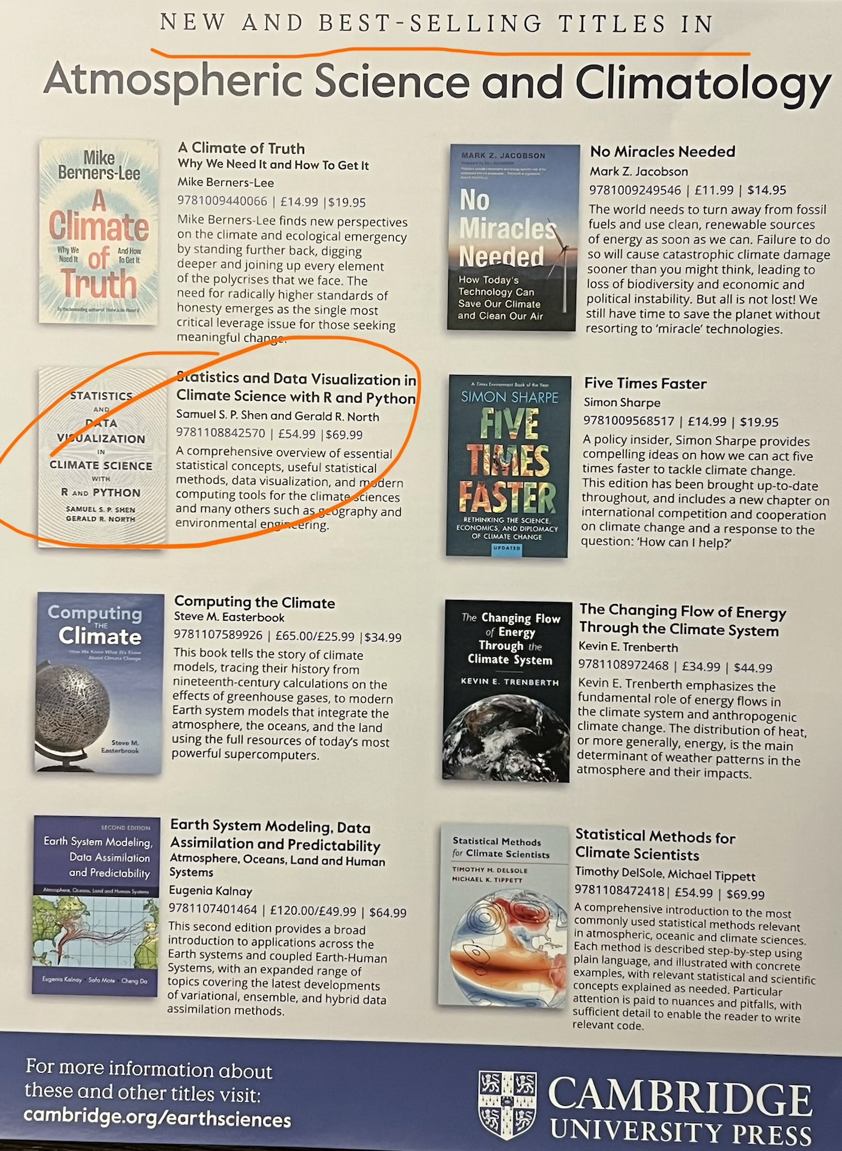 December 2025: The book "Statistics and Data Visualization in Climate Science with R and Python" is on the Cambridge University Press' new and best-selling list for the second year.