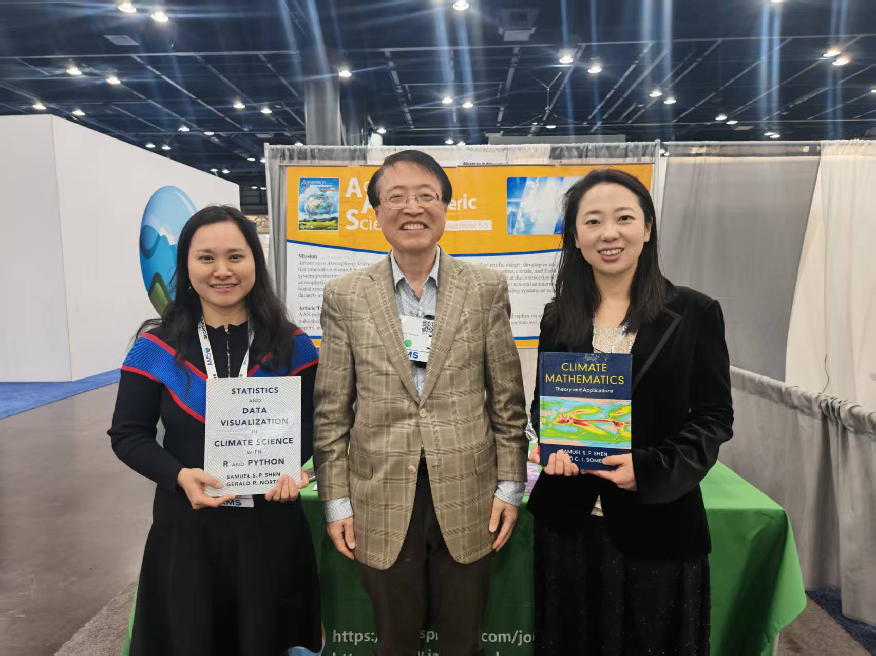 January 28, 2026: The book “Statistics and Data Visualization in Climate Science with R and Python” was displayed at the American Meteorological Society's annual meeting in Houston, Texas, January 26 - 29, 2026. Professor Shen signed the book. He also took photos with some visitors to the Cambridge University Press exhibition booth.